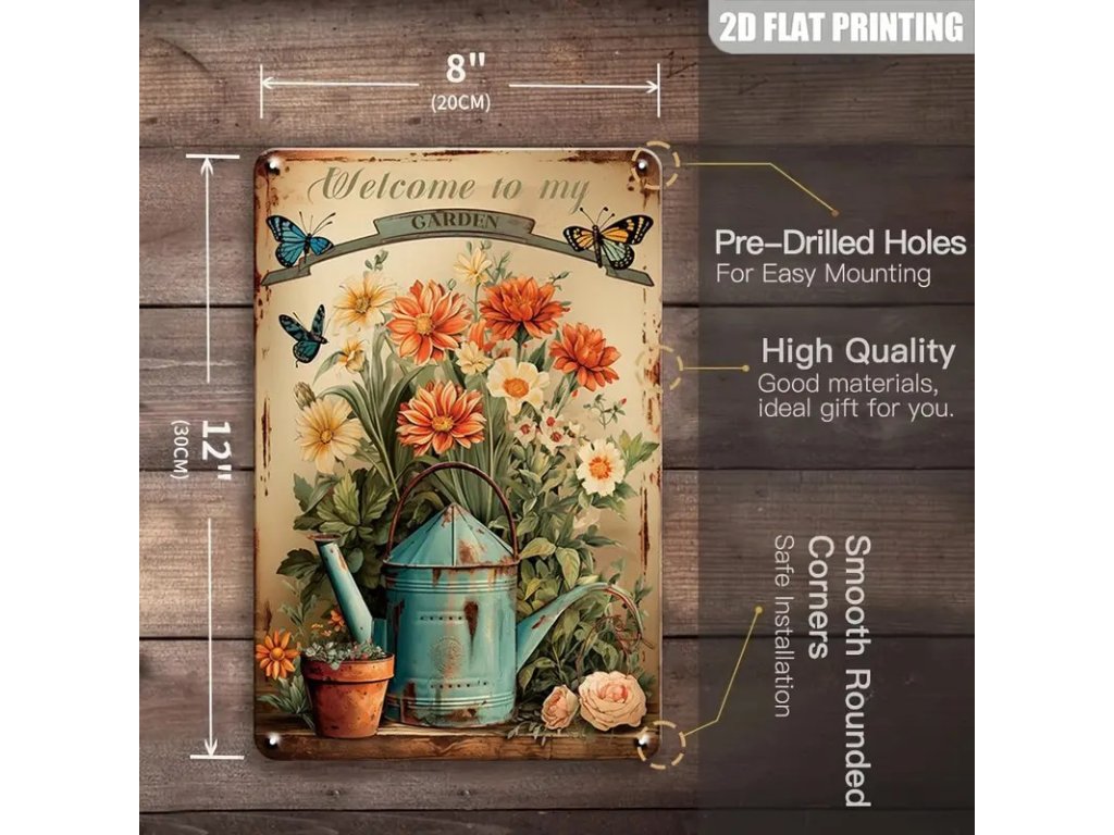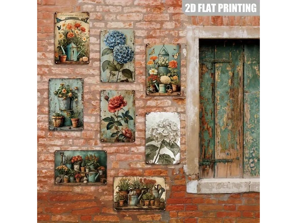 Soubor 8 kusů plechových cedulí. Květiny 20 x 30 cm