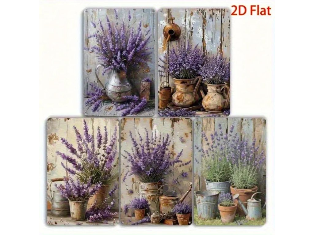 Nádherný soubor pěti vintage cedulí s motivem levandule. Hodí se vlastně kamkoliv do interiéru i ven