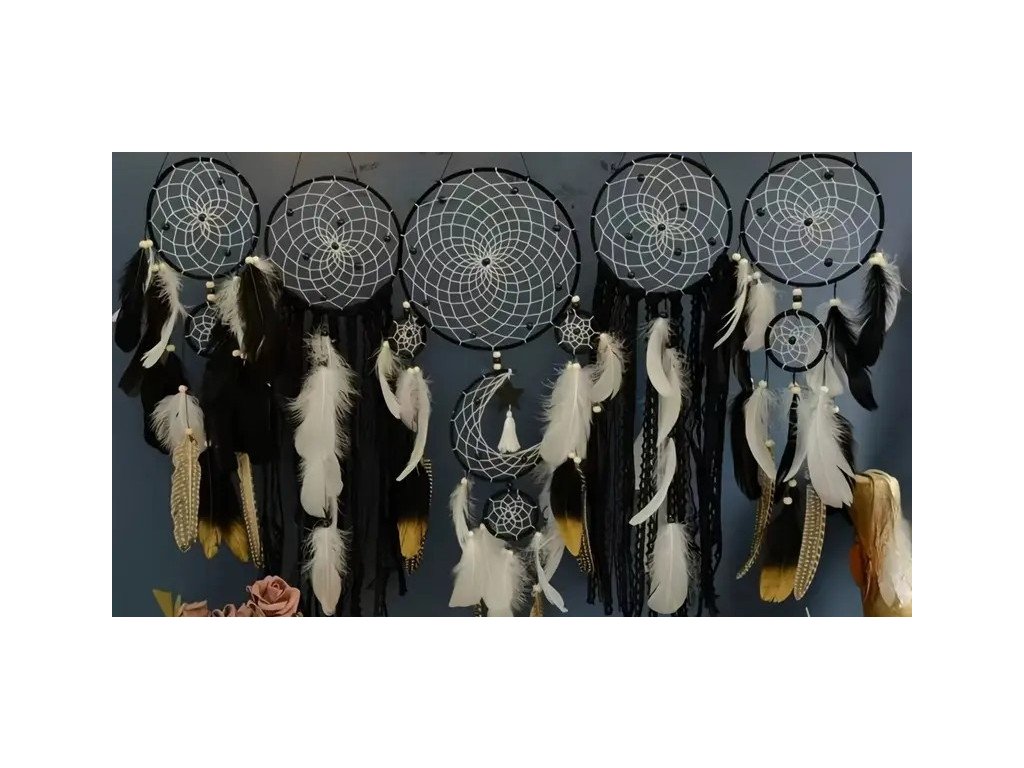 Soubor pěti lapačů zlých snů. Barva černá. cca 70 cm