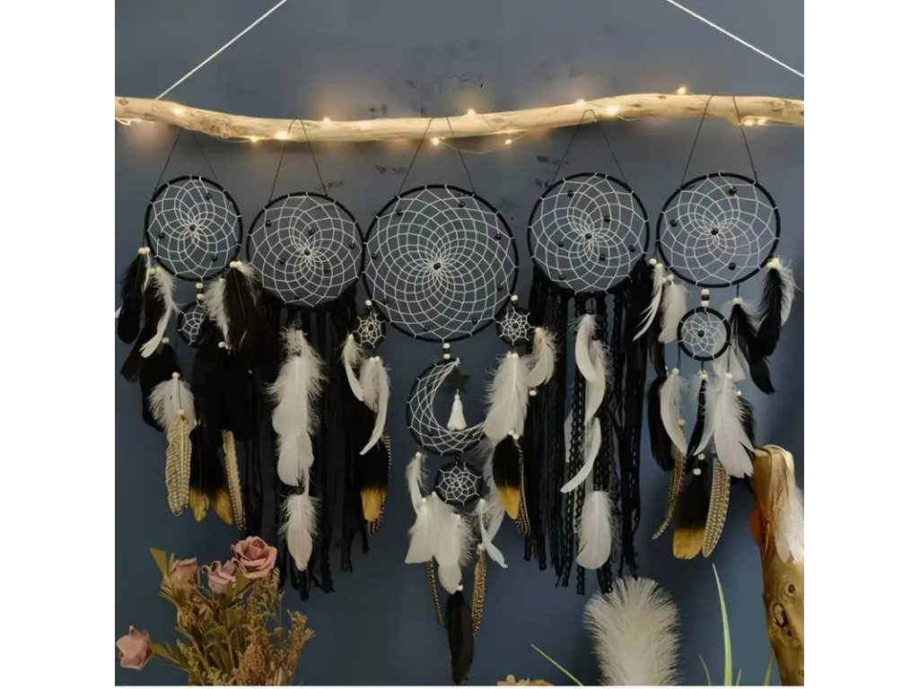 Nádherný soubor pěti lapačů zlých snů v barvě černé