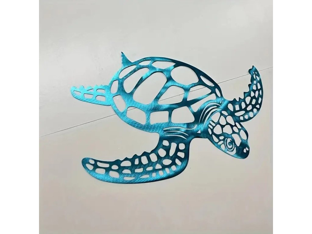 Velká, modrá, kovová želva na stěnu. Nádherná velká kovová dekorace želva. Krásný dárek. Vhodná do interiéru i ven.