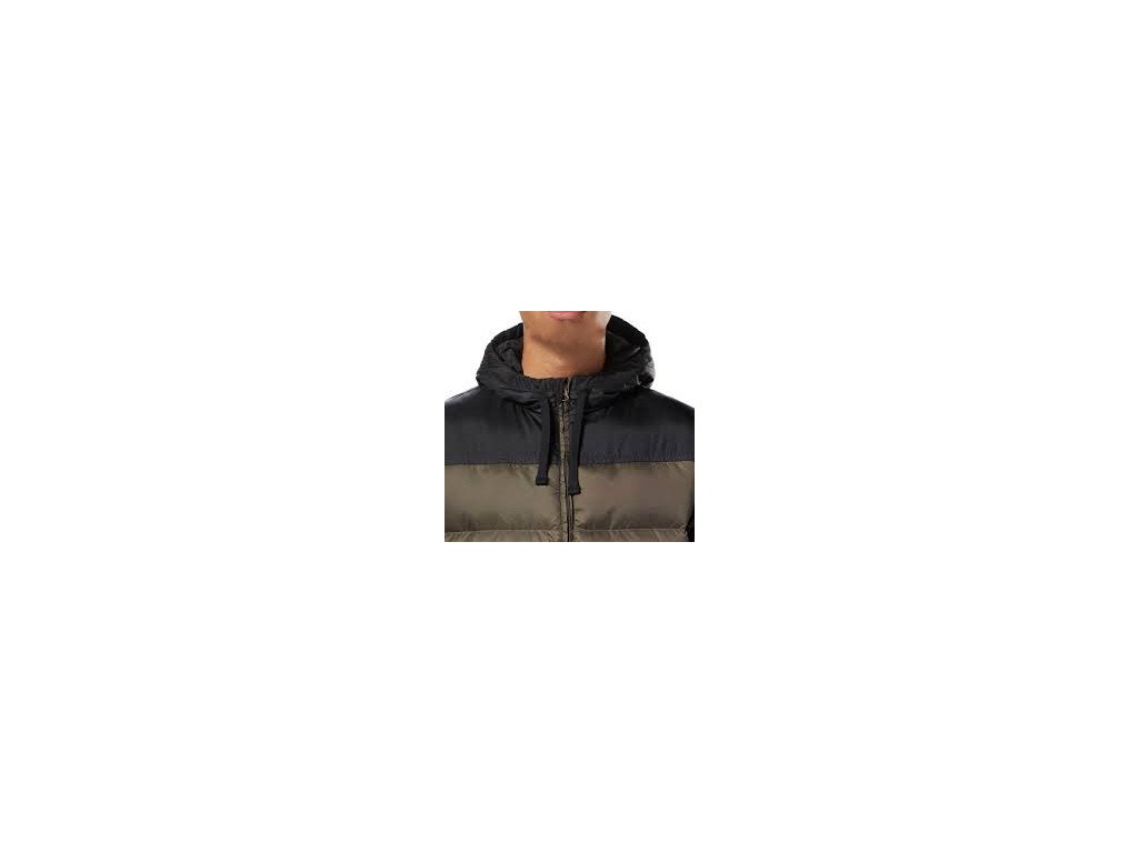 Khaki / černá péřová bunda s kapucí