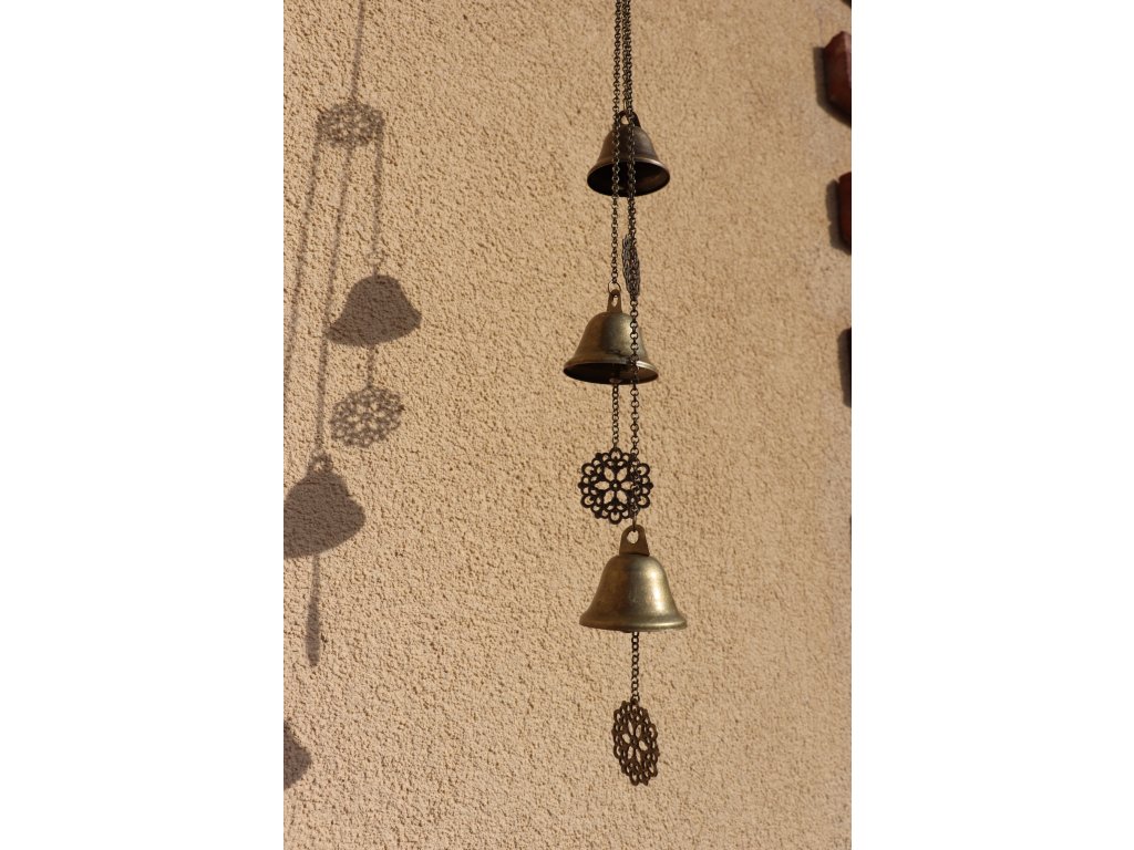 Nádherná dekorace do každé zahrádky, altánu nebo například na balkón. Kovové zvonečky mají roztomilý zvuk. Sedněte si se sklenkou vína a nechte se unášet krásným zvukem při jarním vánku.